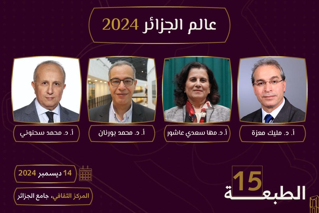 مناسبة الطبعة الخامسة عشرة من وسام العالم الجزائري، يسعدنا الإعلان عن العلماء المُكرَّمين لعام 2024: أ. د. محمد بورنان د. مها سعدي عاشور أ. د. محمد