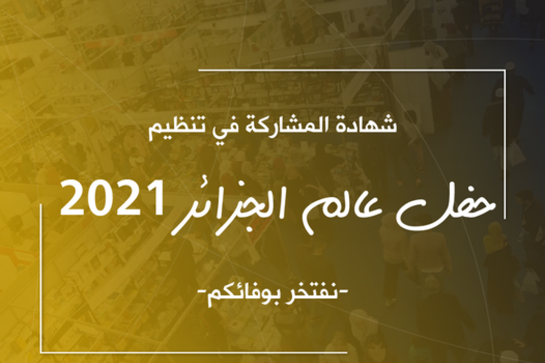 تدعو مؤسسة وسام العالم الجزائري المتطوعين المساهمين في تنظيم حفل تكريم عالم الجزائر 2021، بالمركز الدولي للمؤتمرات إلى استلام "شهادة المشاركة" ممضاة