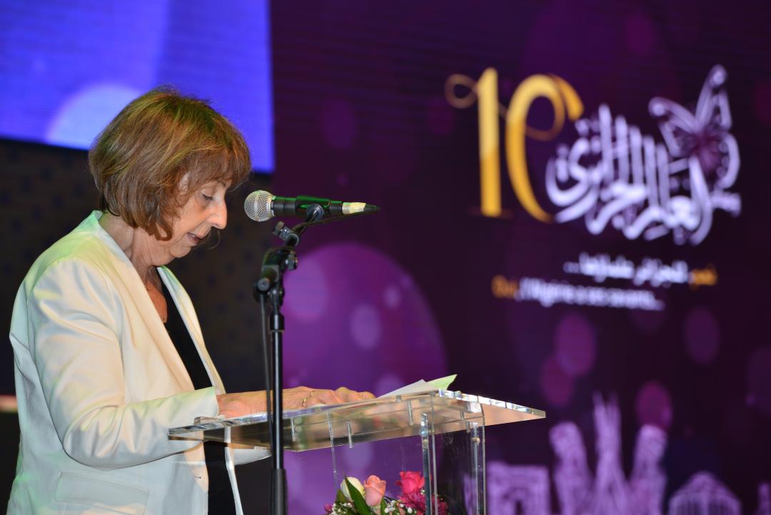 يشرفني كثيرا وأنا سعيدة جدا أن أكون بين هذا الحضور من علماء و متعلمين و طلبة و أساتذة، فالسلام عليكم و رحمة الله وبركاته، بالنسبة لي مهنتي مهنة التعليم فقد اخترتها وأنا صغيرة والحمد لله. أحمد الله أن ألهمني هذا الاختيار فهي مهنة الأنبياء والمرسلين أوصانا بها الرسول صلى الله عليه و سلم فمن ضمن ما قال عليه الصلاة و السلام "من تعلم علما فله أجره وأجر من عمل به لا ينقص به من أجر العامل شيئا" فأسأل الله أن أكون قد أخلصت في عملي وإن شاء الله أكون قد خدمت بلدي وأبناء بلدي فالحمد لله لقد كانت في الحقيقة مهنة وعملا نبيلا.