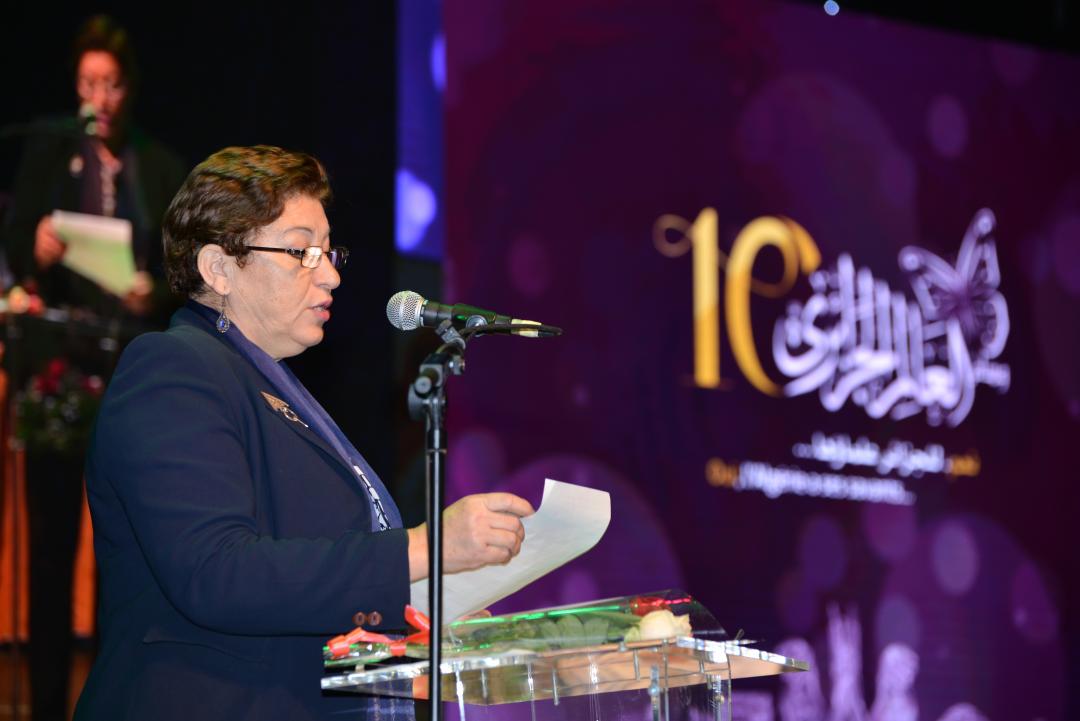 أشكر كل من ساهم في هذه المبادرة الطيبة، وأنا سعيدة جدا لأن أُكرّم في أواخر تجربتي من العمر في التعليم، وأشكر أصحاب المؤسسة لأنهم فكّروا في المعلم "قُم للمعلم وفّه التبجيل كاد المعلم أن يكون رسولا ".