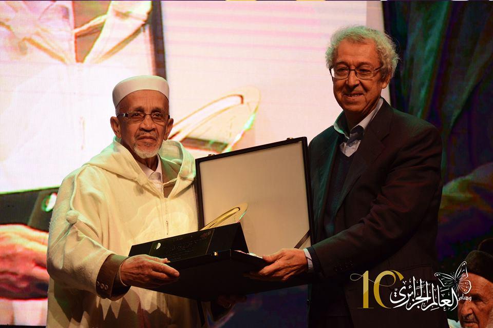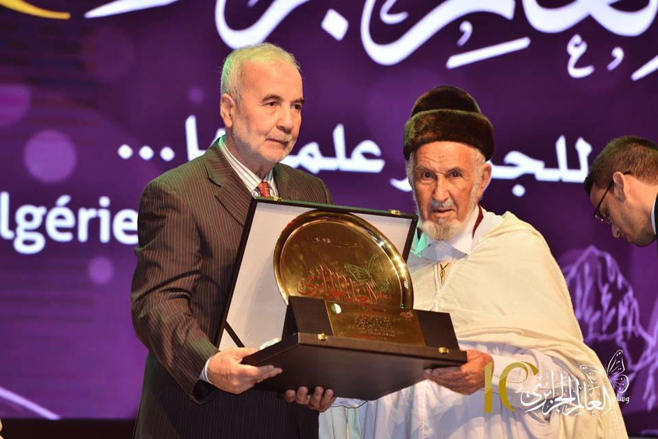 أيها الحاضرون، السلام عليكم ورحمة الله تعالى وبركاته، إنه لمن دواعي السرور والغبطة أن أكون معكم وبينكم في يوم هذا العرفان الذي تحييه مؤسسة وسام العالم الجزائري، هذه المؤسسة التي أرست تقاليدا حضارية جديدة يكون فيه الاحتفاء بأهل الفضل والعلم والفكر والثقافة...، وإنني اليوم وأنا كما ترون قد بلغت من الكبر عتيا و أنا على مشارف القرن من عمري.