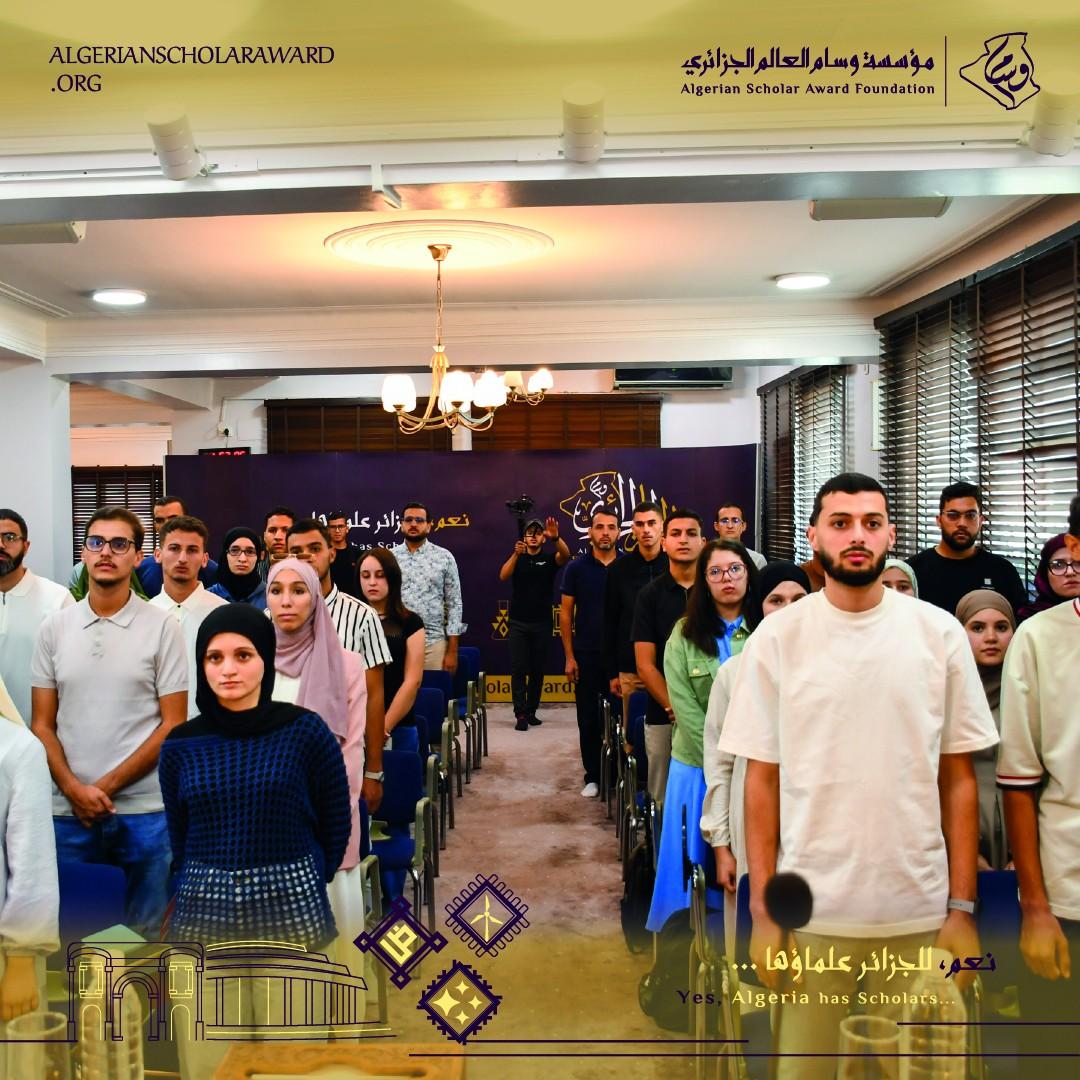 الرّابع من أكتوبر، السّاعة تشير إلى التّاسعة صباحًا، يجمع الوسام مجدّدًا الحاملين لرسالته، والسّاعين لترسيخ قيمته، بأن نعم للجزائر علماؤها وأفذاذها، وفي جوٍّ أخوي محمّلٍ بألطاف المحبّة والمودة، نستهلّ يومنا المبارك بآيات بيّناتٍ من القرآن الكريم، لنقف بعدها وقفةً جماعيّةً وبإجلال لأداء النّشيد الوطني.