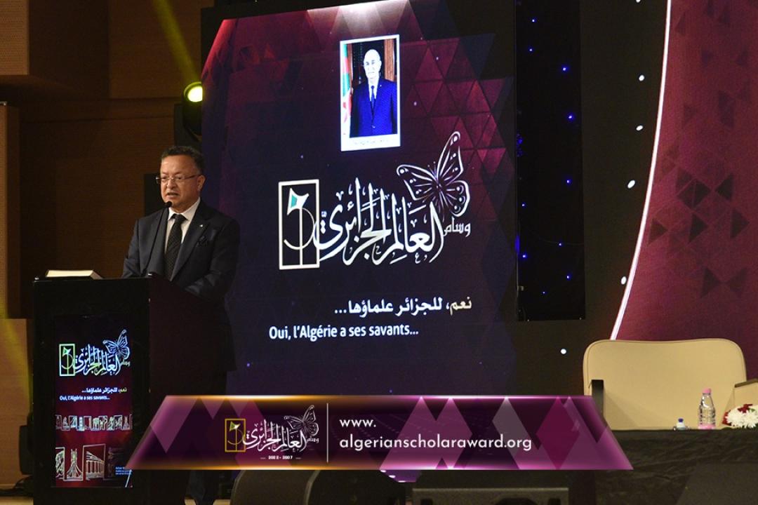 كلمة السيد ابراهيم بوغالي رئيس المجلس الشعبي الوطني ،مشيدا بوسام العالم الجزائري الذي يعتبر مفخرة للجزائر ، وإنّ الوطن الذي يحتفي بعلمائه وطن لا خوف