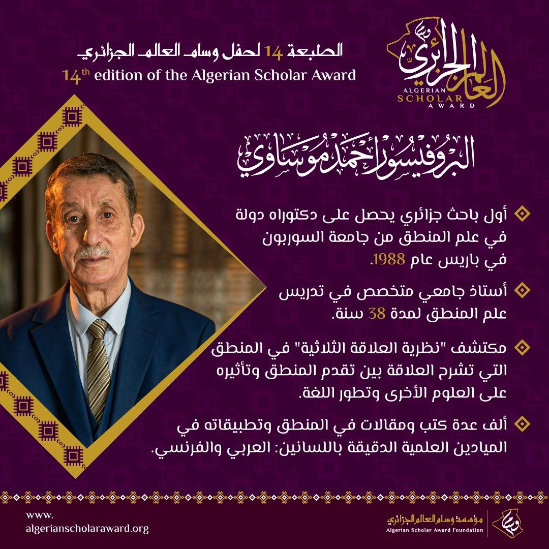 كرمت مؤسسة وسام العالم الجزائري يوم السبت 16 ديسمبر 2023م بقاعة الأطلس بباب الوادي عالمين جزائريين نتيجة إسهاماتهم و إنتاجهم المعرفي الذي خدم الوطن والمجتمع: